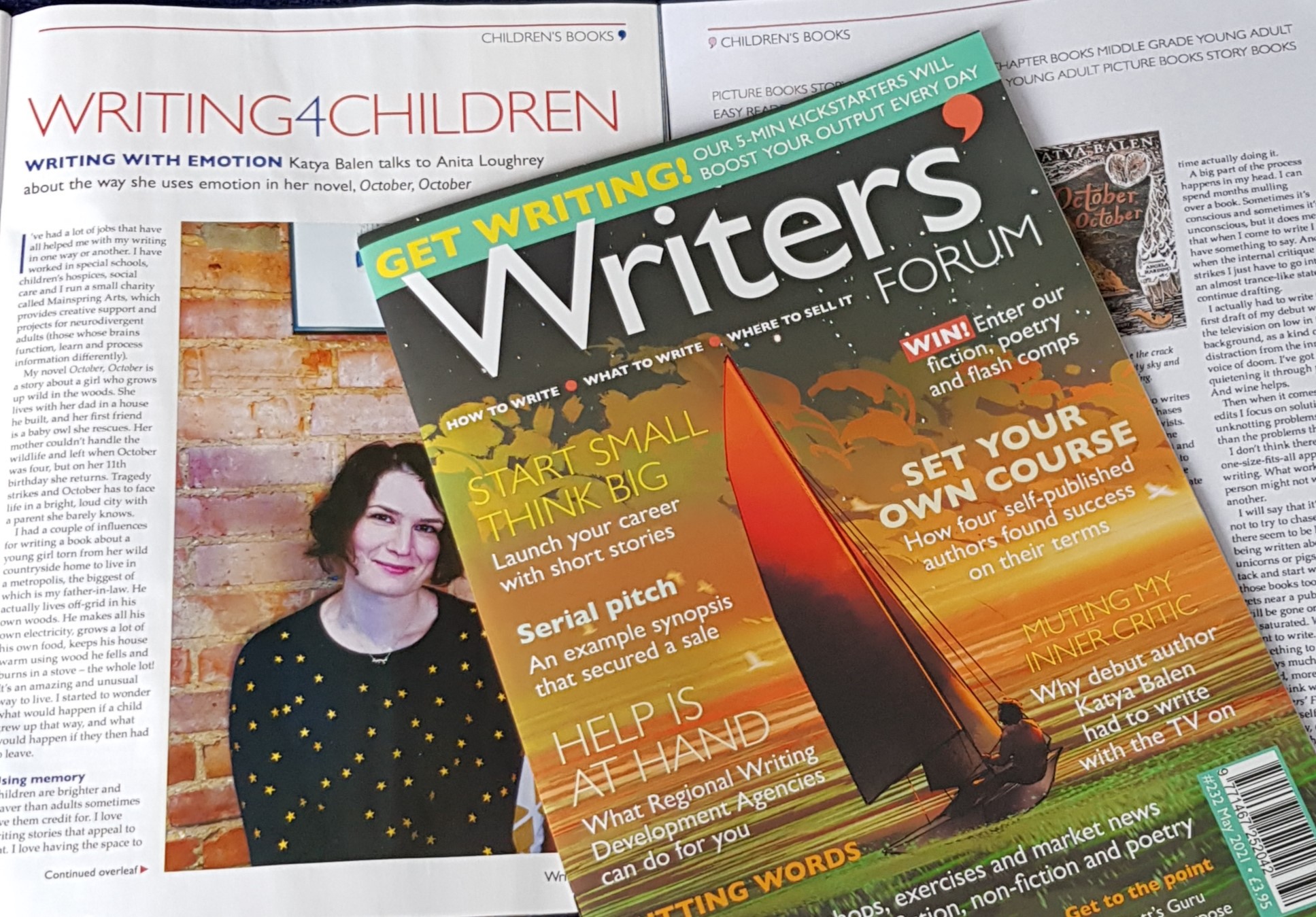 In the #232 May 2021 issue of Writers’ forum, I talk to Katya Balen about the way she uses emotion in her novel, October, October.