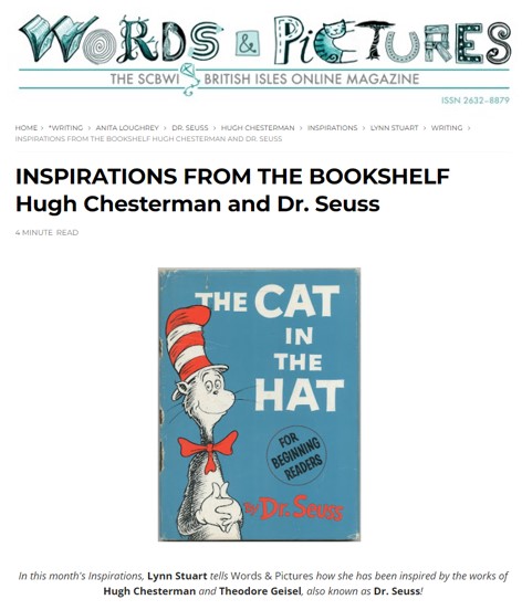 For a recent issue of the SCBWI British Isles online magazine, Words & Pictures, I interviewed Lynn Stuart about what authors have inspired her writing. She explained that she is inspired by the work of Hugh Chesterman and Dr Seuss.