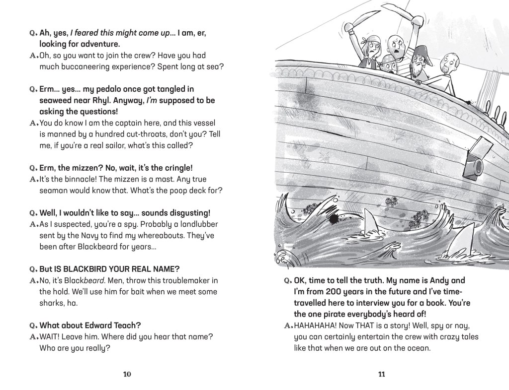 Interview with Blackbeard was inspired by the popularity of the series of animal Q&A books I have written for Welbeck beginning with Interview with a Tiger. I thought, if I can build a machine to enable me to chat to animals then why can’t I twiddle a few circuits and turn it into a time machine? It wasn’t easy but, it’s amazing what you can do with a some spare coat hangers and a Swiss Army Knife…. So, now I talk to anyone from the past. Nice.