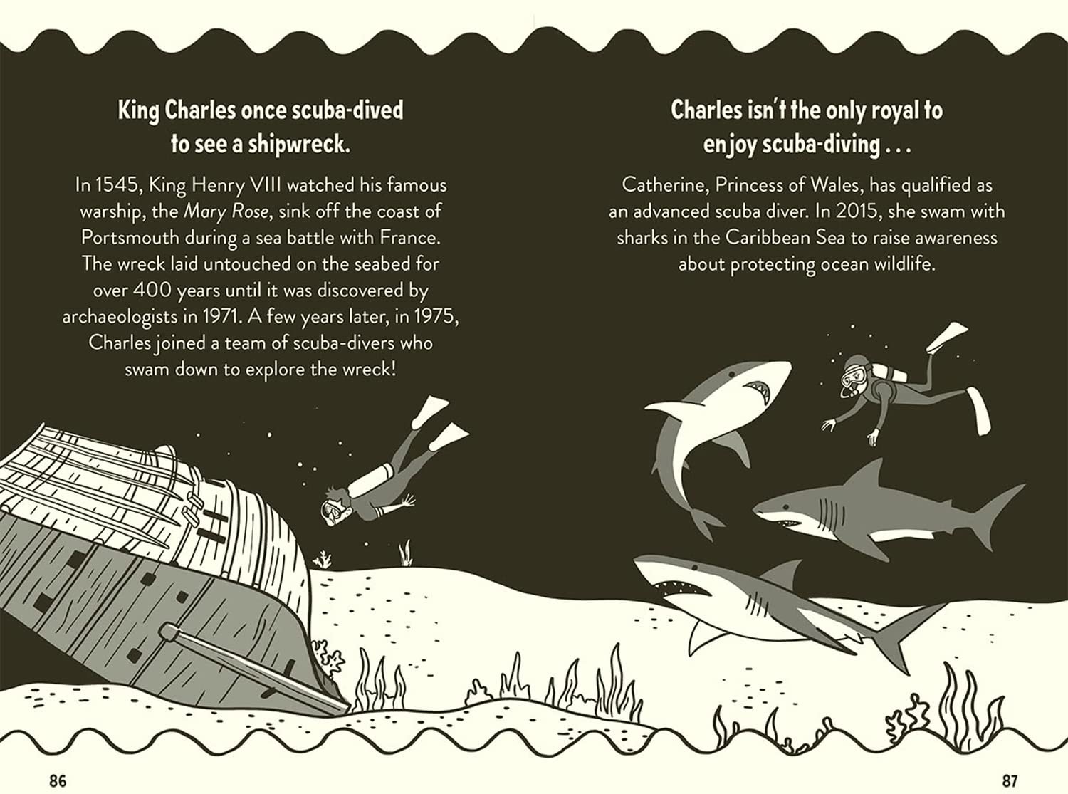 These bitesize facts are delivered with humour and charm in this fun fully-illustrated book. Discover Charles is passionate about the environment, he was the first royal to go to school, Charles is a member of the Magic Circle and he does not need a passport whereas other members of the royal family do.