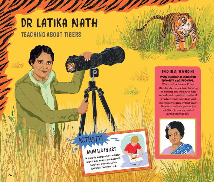 Charlie, the editor at Walker Books, and I agreed we wanted to feature mostly conservationists who were working within their own communities or protecting animals in the country where they grew up. Conservation often starts at home and children would identify with this. We also aimed to have a conservationist from every continent, protecting very different animals and also doing different types of conservation work. There is sustainable farming, growing super corals, rewilding, a park ranger, raising awareness of climate change and lots more.