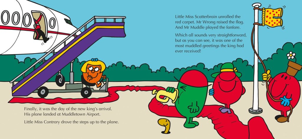 Finally, King Charles III arrives at Middletown Airport for the Cleverland parade, where Miss Brainy had calculated the exact number of flags that were needed for them to wave. The King’s next stop is Nonsenseland where he looks right at home and the tour continues until he reaches Happyland and the grand gala ball and banquet.
