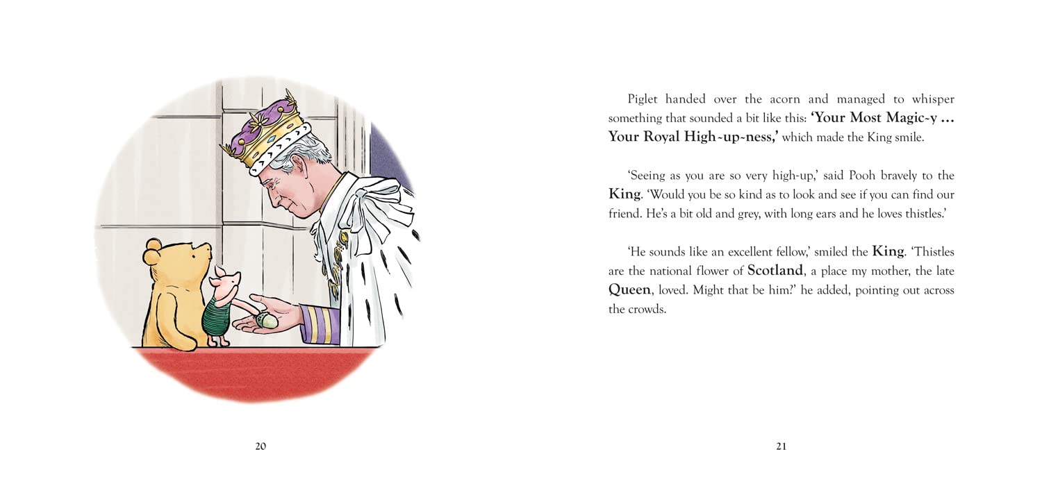 Winnie-the-Pooh and Piglet lose Eeyore in the crowd so they come up with an ingenious plan to find their friend. Along the way they meet a King Charles III and learn about the importance of kindness, helping others and new beginnings.