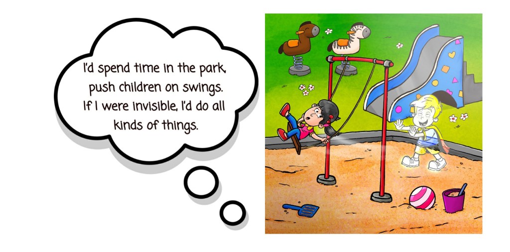 If I Were Invisible is a rhyming picture book about a boy wondering what fun he could have if no-one could see him. Think of all the things we could get away with if nobody could see us! But how long would the fun last, if we had to do it all alone?