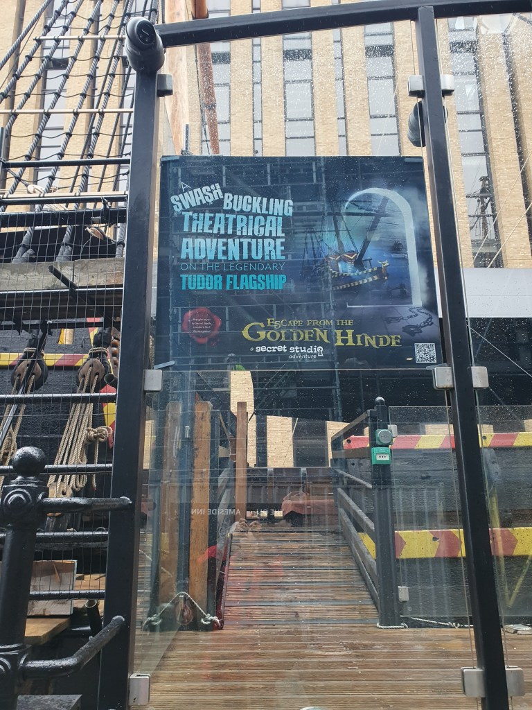 I arrived at the Old Thames Inn wearing my pirate costume where I met the other people who had been invited and Catherine Doyle. We drank prosecco and then ventured to the escape room on The Golden Hind, designed by Secret Rooms.