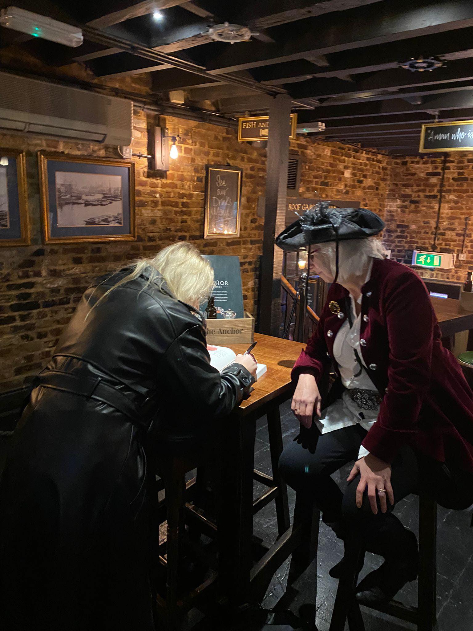 After we had completed the quest and played a few pirate games then went for a late buffet-style lunch at The Anchor where we received our fabulous treasure: a copy of the proof Pirates of Darksea. Here is a photo of me getting my copy signed by Catherine Doyle.
