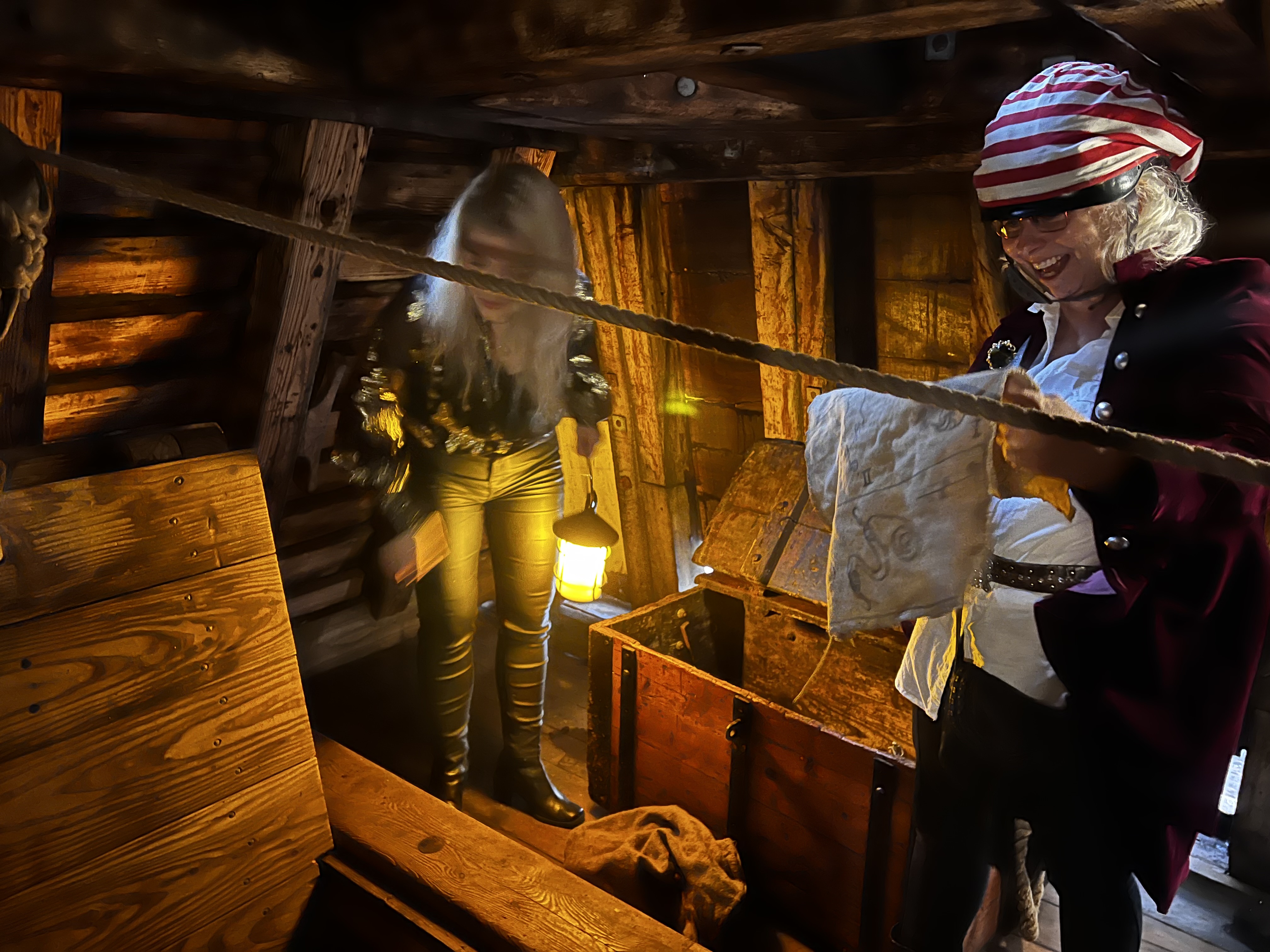 Then we were ushered into a room by the talented actors and locked in so we had to navigate our way through the puzzles and around the ship to find the missing ring. Here I am retrieving the next clue from the chest.