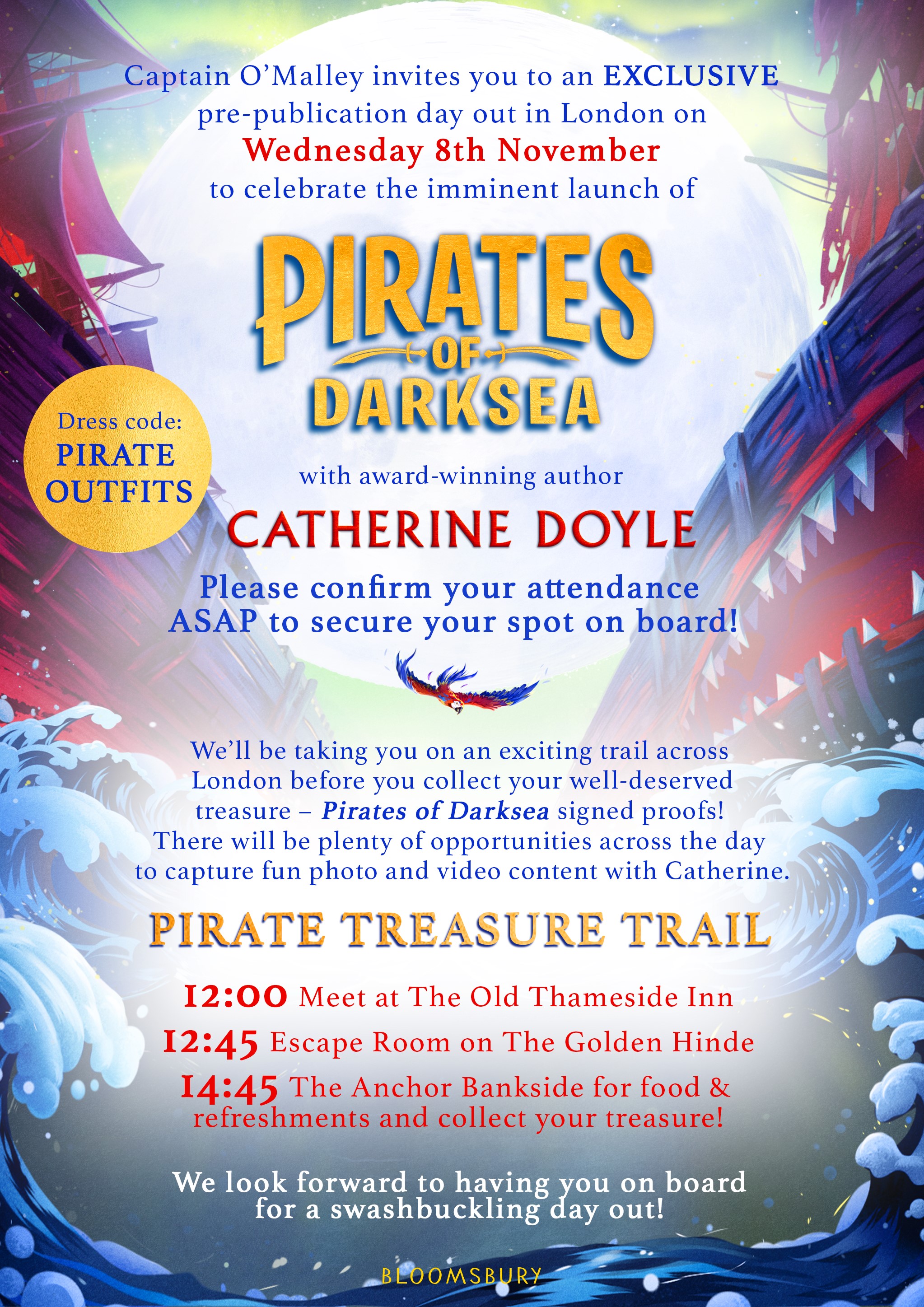 A couple of weeks ago I was invited by Bloomsbury to a spectacular pirate themed book launch to celebrate the release of the proofs for an exciting new adventure novel, Pirates of Darksea by Catherine Doyle.