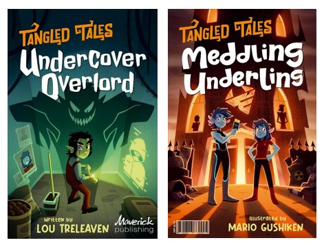 I love this concept of the Tangled Tales series, which has two book in one from Maverick Publishing. They are perfect for the emergent reader who has just started to read more independently but is unable to sustain a full novel. Each has a spooky theme to capture children’s imaginations split into eight easy to digest chapters. The stories are: Undercover Overlord and Meddling Underling. Both are creatively written by Lou Treleaven and beautifully illustrated by Mario Gushiken.