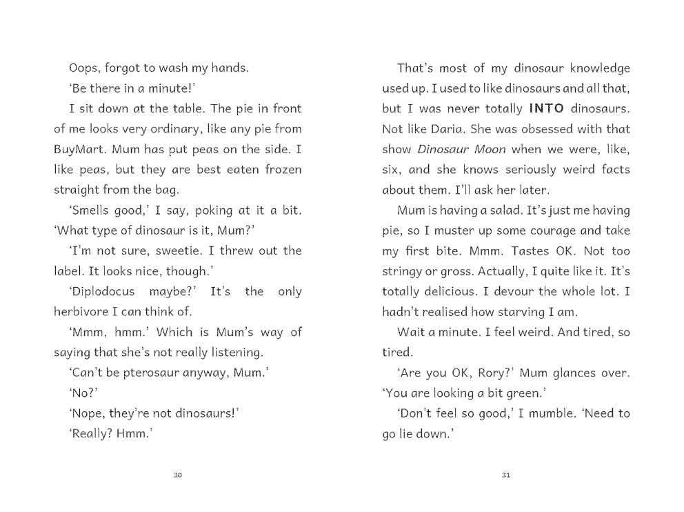 I’m Rory, sometimes Roary Rory, and this is the story of the weirdest week of my life. Well, the weirdest week so far. Probably. I mean the week I was born was probably quite weird for me. But, I don’t remember that. Thankfully. Anyway, SPOILER ALERT, this week’s weirdness starts on Monday, when I am accidentally turned into a dinosaur… Rory is having a weird week. A really weird week.