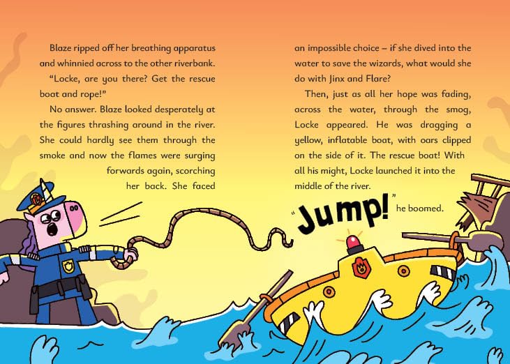 When two young dragons accidentally set fire to The Witchy Wood, firefighting unicorn, Blaze, and her emergency vehicle, Quench, race to the scene. As they struggle to get everyone to safety and stop the flames from spreading, a witch called Jinx decides her magical abilities are exactly the help they need to stop the inferno. But Jinx’s magic only spells one thing…DISASTER. And soon the flames are raging towards a treehouse full of powerful potions. Can Blaze and Quench get everyone out before the whole of Witchy Wood goes up in smoke?